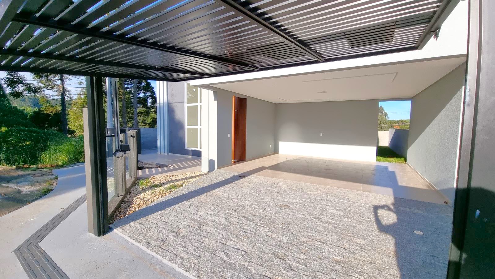 Porta principal com design contemporâneo (painel mimetizado ripado)